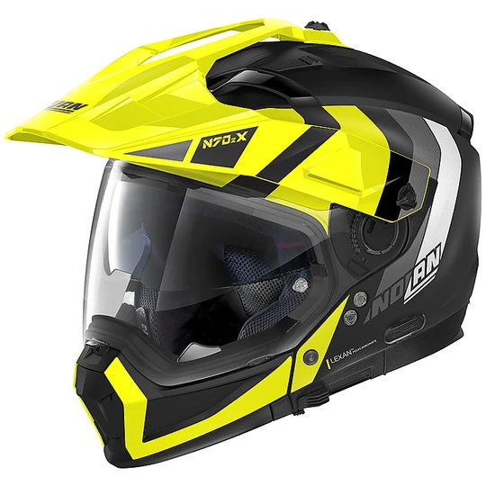 Es ist das Topmodell für Straßen- und Geländefahrzeuge von Nolan, dem ersten Helm, der mit einem abnehmbaren Kinnschutz ausgestattet ist. Es zeichnet sich durch ein von der Straße inspiriertes Design, umfangreiche technische Funktionen und eine gute Verfügbarkeit von Farben und Grafiken aus.Geringes Volumen (dank der Verfügbarkeit von zwei Außenschalengrößen), doppelte P / J-Zulassung, Ultrawide-Visier, besonders großes Bullauge für die Verwendung der Maske (auch mit montiertem und geöffnetem Visier), VPS-Sonnenschutz (in verschiedenen Positionen einstellbar) und ausgestattet mit einem automatischen Rückführsystem), AirBooster Technology-Oberlüftungssystem, Microlock2-Rückhaltesystem mit mikrometrischer Doppelhebelverstellung, innovativer Clima Comfort-Komfortpolsterung (mit mikroperforierten Stoffen und verstellbarer Nackenrolle) und Veranlagung für das Kommunikationssystem N-Com möchte den N70-2 X zum Offroad- und Offroad-Referenz-Crossover für das anspruchsvollste touristische Motorrad machen.