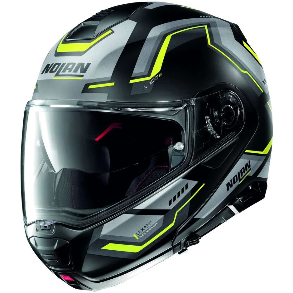 Es ist Nolans Top-of-the-Range-Flip-Up. Kleines Volumen, doppelte P / J-Homologation, Ultrawide-Visier, VPS-Sonnenschutz, AirBooster-Technologie oberes Belüftungssystem, Rotationsbewegung des Kinnschutzes mit elliptischer Flugbahn, exklusives Kinnschutz-Öffnungssystem mit Double-Action-Mechanismus, Haltesystem mit mikrometrischer Einstellung mit Doppelhebel Microlock 2 , innovative Clima Comfort-Innenkomfortpolsterung und die Vorbereitung für das N-Com-Kommunikationssystem machen N100-5 zu einem sehr beliebten Produkt auch bei den anspruchsvollsten Motorradtouristen.